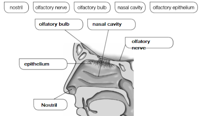 Smells enter the nose through two holes called nostrils and reach the olfactory epithelium inside the nasal cavity.